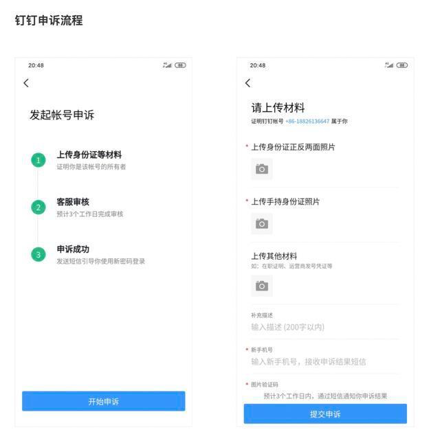 钉钉给出的解决方案也是申诉找回——通过上传身份证等资料提交审核。